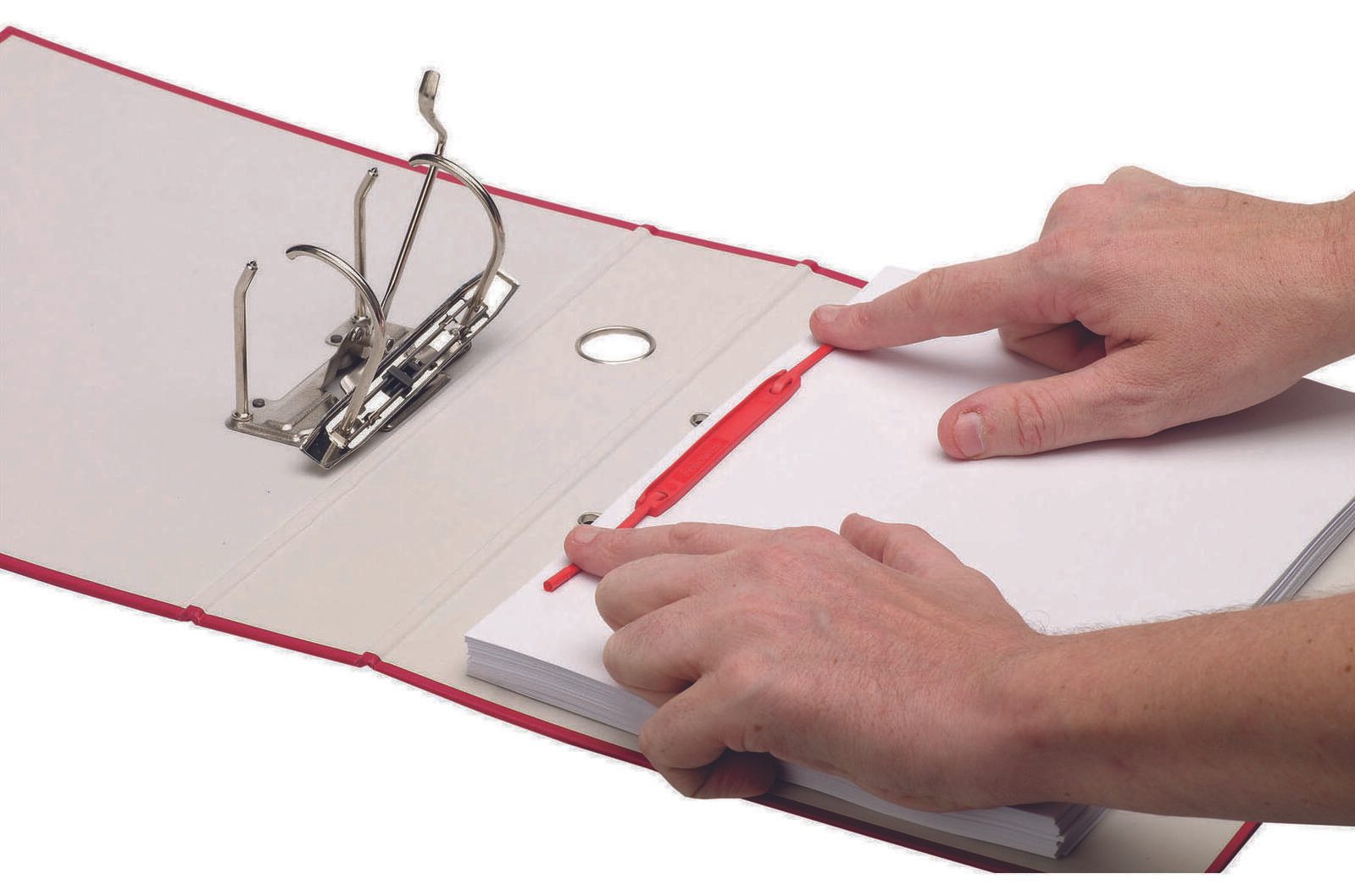 Die auffällige rote Farbe sorgt nicht nur für eine ansprechende Optik, sondern erleichtert auch die schnelle Identifikation Ihrer abgehefteten Dokumente. Sie können Ihre Unterlagen nach Themen oder Projekten sortieren und dabei gleichzeitig einen Farbakzent setzen. Mit einer Verpackungseinheit von 100 Stück sind Sie bestens ausgestattet, um Ihre Büroorganisation auf ein neues Level zu heben.