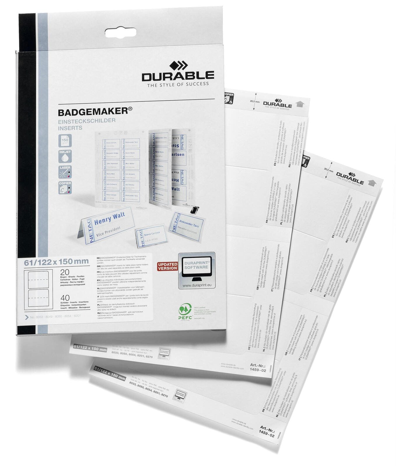 - DURABLE Einsteckschilder für Namensschilder Badgemaker 15,0 x 6,1 cm DURABLE Einsteckschilder für Namensschilder Badgemaker 15,0 x 6,1 cm