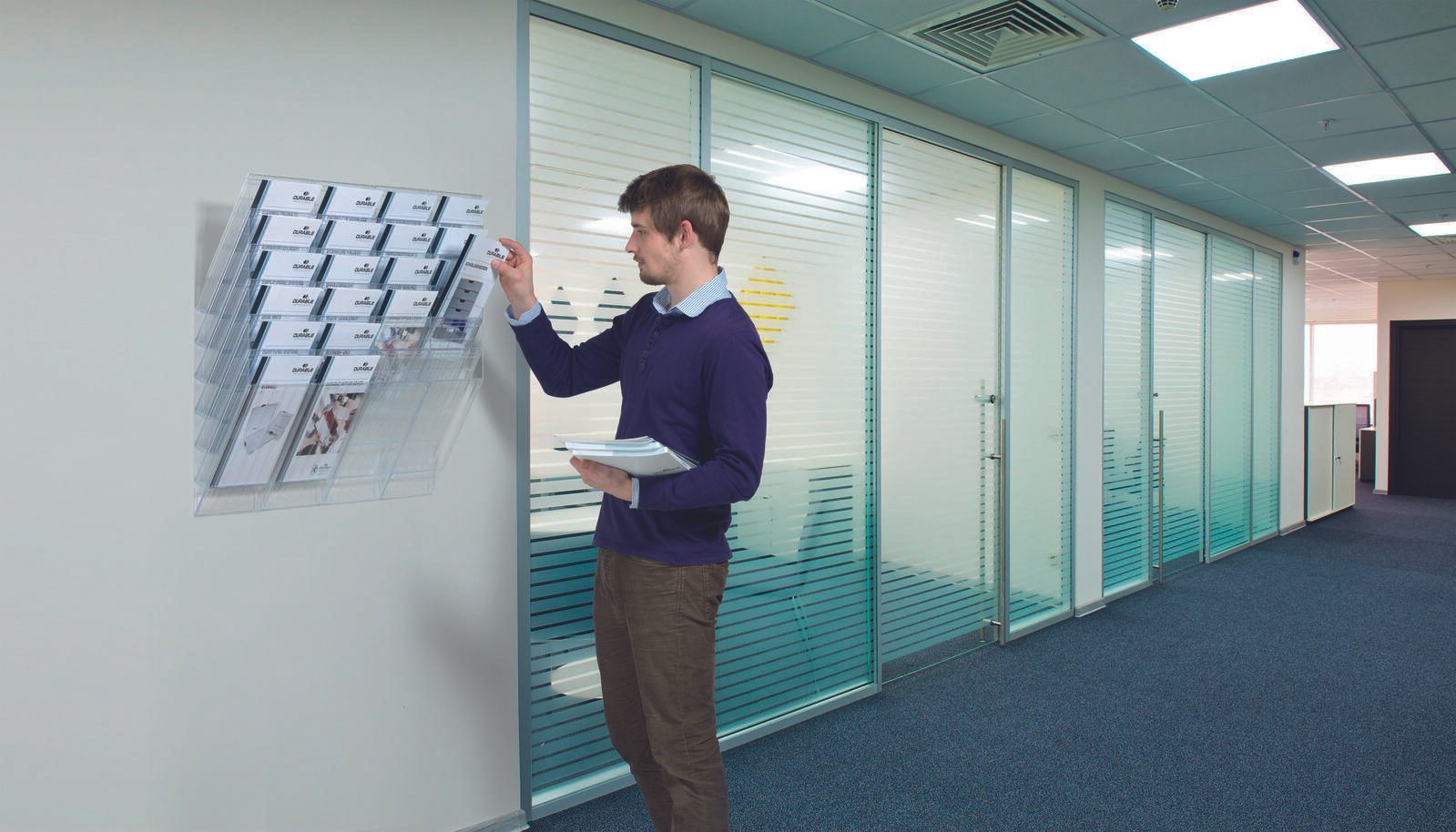 Die Wandmontagefähigkeit dieses Modells macht es ideal für den Einsatz im Innenbereich. Egal ob im Büro, im Wartezimmer oder im Eingangsbereich Ihres Unternehmens - der DURABLE Wandprospekthalter fügt sich nahtlos in jede Umgebung ein und sorgt für eine ordentliche Präsentation Ihrer Informationen.