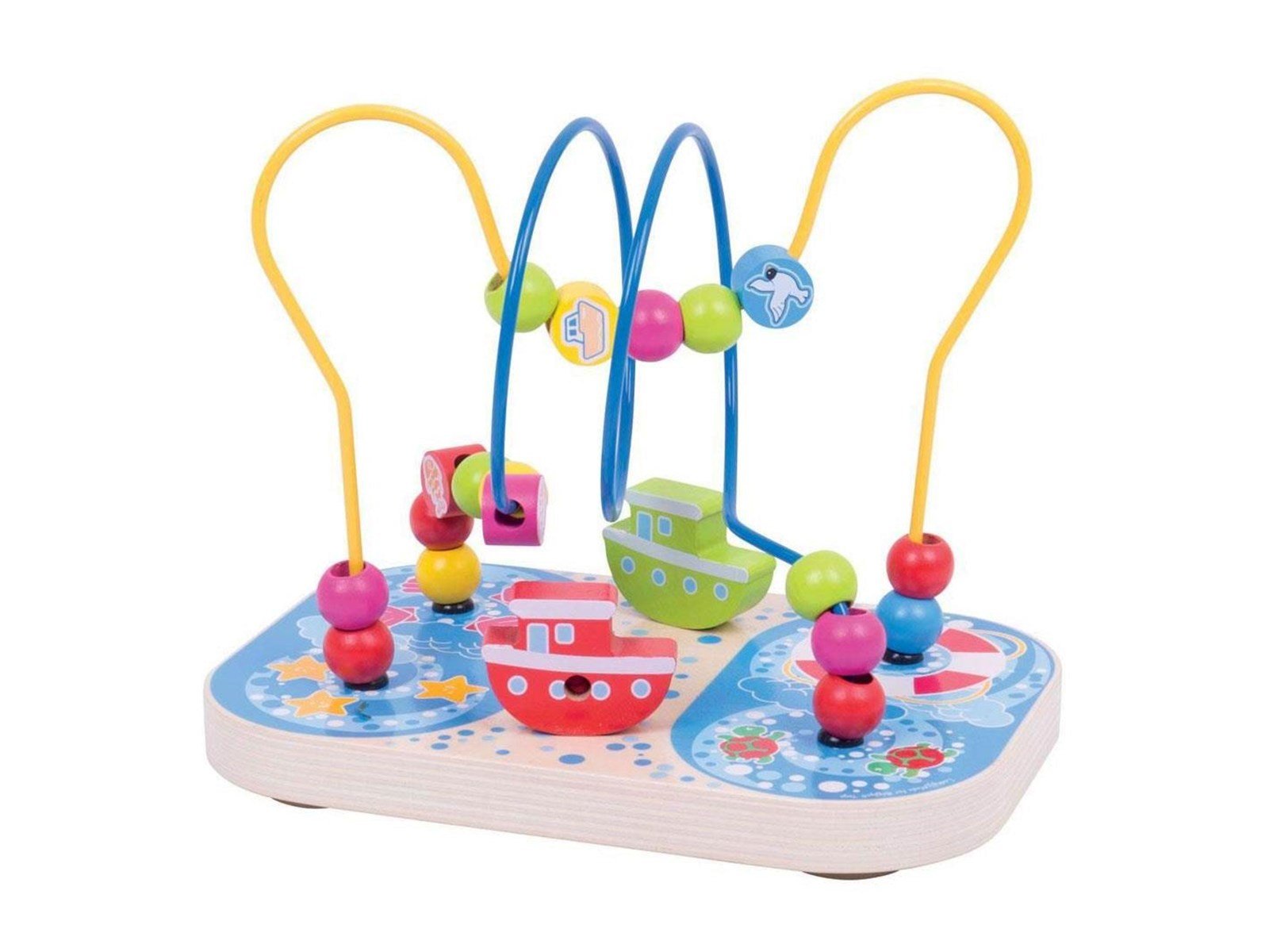 Discover the wonders of the sea with our Marine wooden locomotion spiral. Little hands can move the maritime-themed beads over, under and over the wire bead frame. Do you see the two bright ships? What about the starfish and turtles? Made from high-quality, responsible materials. Complies with current European safety standards.