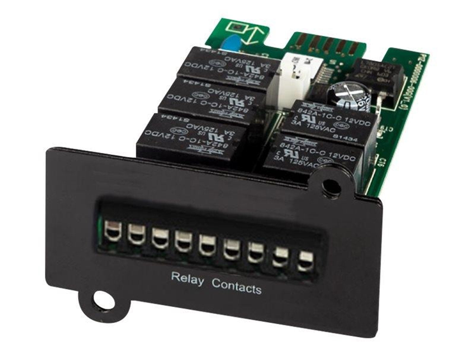 AS/400 cards provide clean dry contacts for remote shutdown and monitoring of a UPS. It is frequently used along with PLCs and signal control panels. Information delivered are UPS failure, Alarm, Main Fail, Bypass, Battery Low, UPS On. Using AS/400 it possible to shutdown UPS remotely. Solution requires external 12V/24VDC source for a high signal.