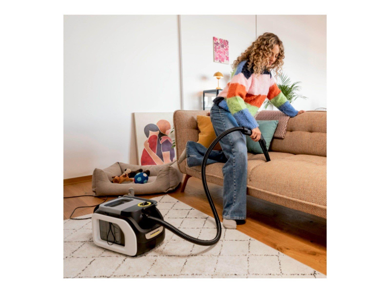 Der Kärcher SE 3 Compact Home Teppichreiniger wurde entwickelt, um Schmutz und Flecken effizient zu bekämpfen. Dieser Kanisterreiniger nutzt ein Nassreinigungsverfahren für die gründliche Reinigung von Teppichen. Mit einem Aktionsradius von 5,8 m und einer Schlauchlänge von 1,9 m wird die Manövrierfähigkeit für den Einsatz in verschiedenen Räumen verbessert. Das Zwei-Tank-System trennt sauberes und schmutziges Wasser mit einem Fassungsvermögen von 1,7 Litern für klares Wasser und 2,9 Litern für schmutziges Wasser und sorgt so für ein gleichmäßiges Reinigungserlebnis ohne häufiges Nachfüllen. Die Benutzer schätzen den klappbaren Griff und die integrierte Zubehörablage, die den Transport des Geräts optimieren.Darüber hinaus wird der Teppichreiniger mit unverzichtbarem Zubehör geliefert, darunter eine 100-ml-Teppichreinigungslösung, ein flexibler Schlauch, eine Sprühextraktionsdüse für Polstermöbel und ein Fugensprühwerkzeug. Mit einem Schalldruckpegel von 83 dB(A) sorgt er für eine hohe Leistung bei minimaler Geräuschentwicklung. Der Kärcher SE 3 Compact Home ist ideal für die Sauberkeit von Teppichböden und damit eine zuverlässige Wahl für Haushalte.
