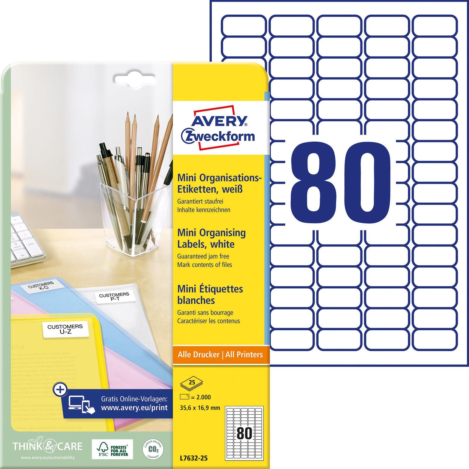 - AVERY Zweckform Etiketten L7632-25 weiß 35,6 x 16,9 mm AVERY Zweckform Etiketten L7632-25 weiß 35,6 x 16,9 mm