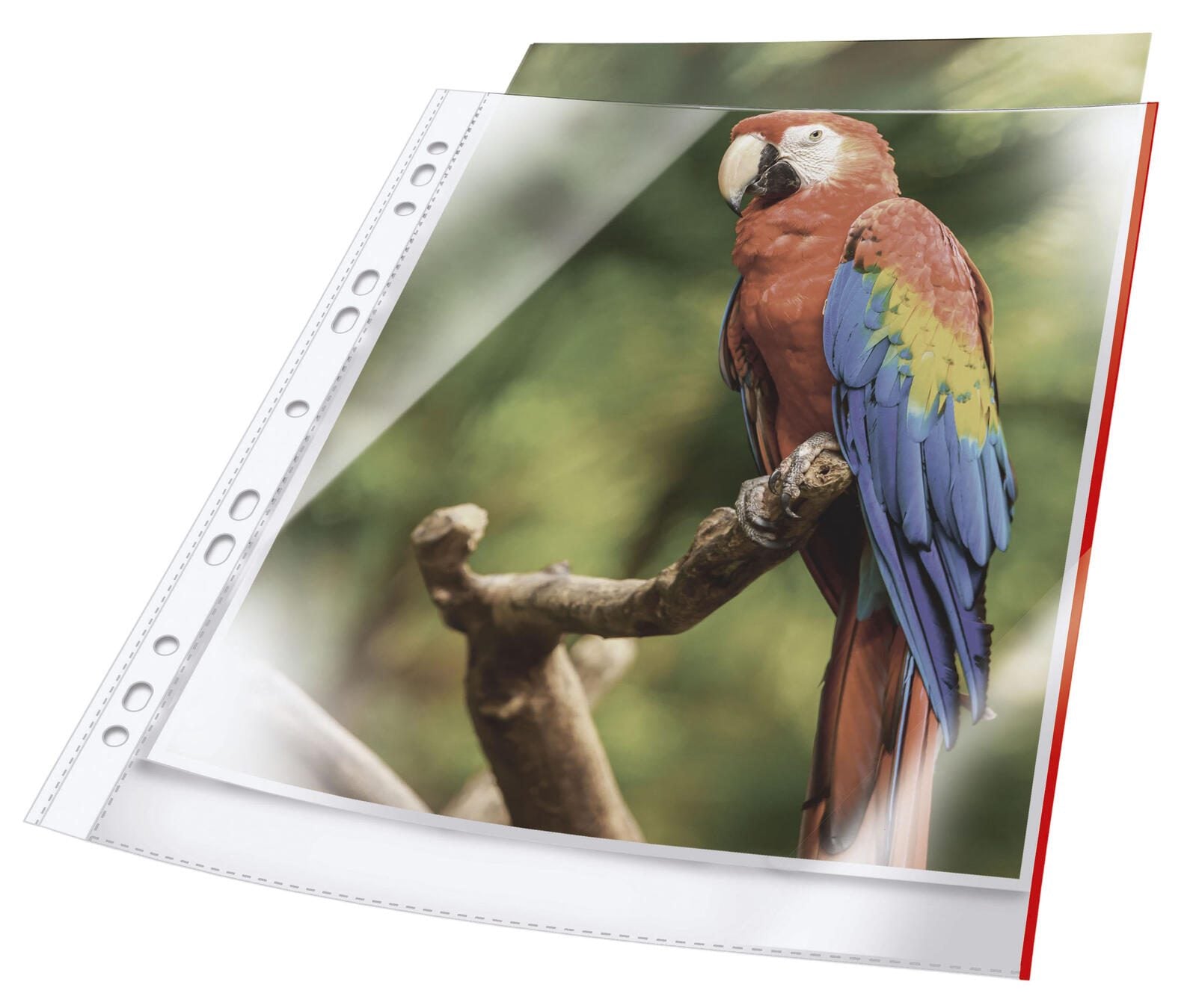 Die DURABLE Prospekthüllen DIN A4 in der ansprechenden Farbe rot-transparent bieten eine praktische Lösung für die sichere Aufbewahrung und Präsentation Ihrer Dokumente. Hergestellt aus hochwertigem Polypropylen (PP), zeichnen sich diese Hüllen durch ihre Langlebigkeit und Dokumentenechtheit aus. Mit einer Stärke von 0.08 mm sind sie robust genug, um Ihre Unterlagen optimal zu schützen, ohne dabei an Flexibilität einzubüßen. Die Prospekthüllen verfügen über eine praktische Öffnung an der Oberseite, die einen einfachen Zugriff auf Ihre Dokumente ermöglicht. Dank der Universal-Lochung lassen sich die Hüllen mühelos in Ordnern abheften, was eine übersichtliche und geordnete Ablage Ihrer Unterlagen gewährleistet. Diese Funktionalität macht die Hüllen ideal für den Einsatz im Büro, in der Schule oder für private Zwecke. Ein weiteres Highlight ist die klare Oberfläche, die nicht nur einen professionellen Eindruck hinterlässt, sondern auch den Inhalt optimal zur Geltung bringt. Die rote Farbe sorgt zudem für einen ansprechenden visuellen Akzent und erleichtert das Auffinden wichtiger Dokumente. In jeder Packung sind 10 Stück enthalten, sodass Sie ausreichend Hüllen zur Verfügung haben, um Ihre Dokumente effektiv zu organisieren. Die DURABLE Prospekthüllen sind die perfekte Wahl für alle, die Wert auf Qualität und Funktionalität legen und ihre Unterlagen sicher und stilvoll aufbewahren möchten.Technische Daten | |